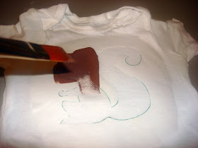 Very important step - place something (I always use a scrap of freezer paper) between your shirt layers so the paint doesn't bleed through.