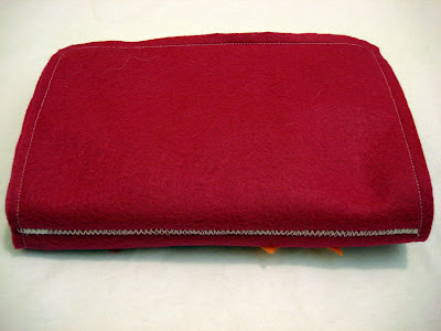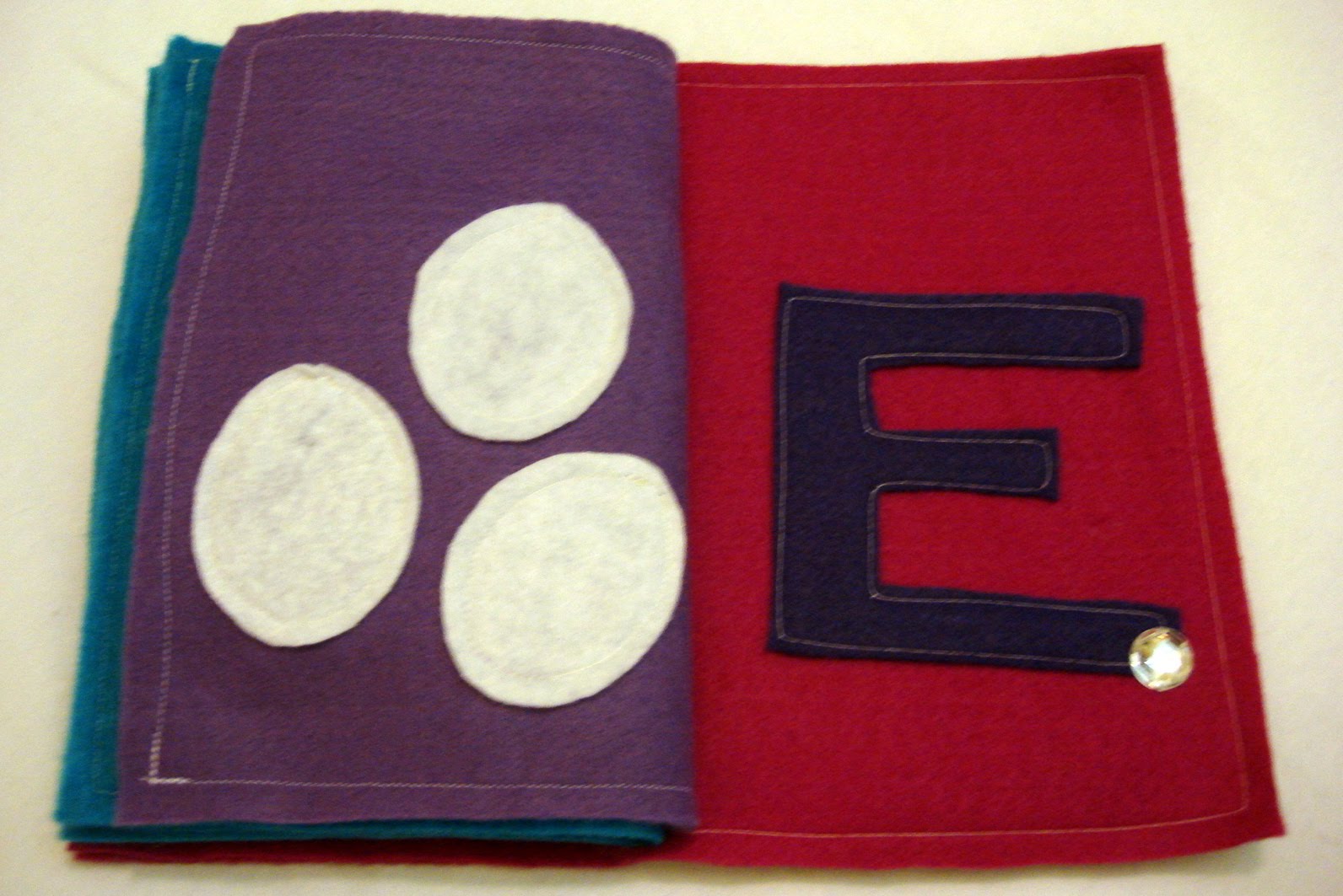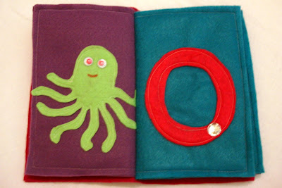 Each page has two pieces of the same colored felt sewn together. I used a zig zag stitch to bind the book. I love it and will probably make more of these for one year old gifts!