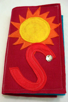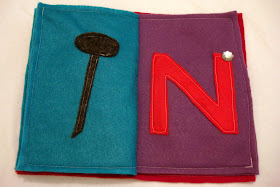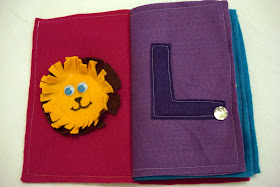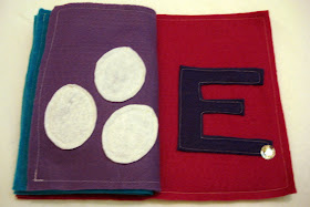 Each page has two pieces of the same colored felt sewn together. I used a zig zag stitch to bind the book. I love it and will probably make more of these for one year old gifts!