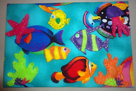 It was probably midnight when I was making this and instead of going to bed, I just kept crafting. I made a magnetic board to entertain my daughter on road trips and in restaurants. I covered one side with fish fabric.