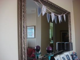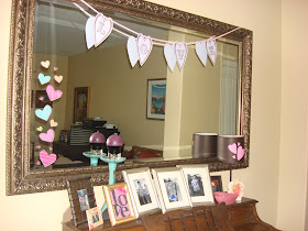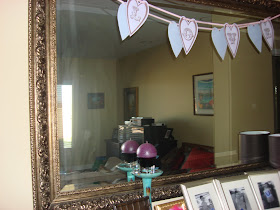 Now that we have that out of the way, I'll show you what is currently decorating the mirror and piano. I mentioned previously that I don't have a mantel. Hopefully that changes soon but for now I recently (yesterday) decorated the piano with a few more Valentine's Day decorations.