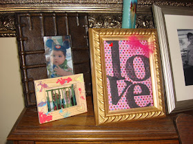 I'm a big fan of my new love frame. If you missed this post, see it here. In addition to the frame, I have my favorite picture of my nephew wearing mickey ears and a little frame my daughter and her BFF made this month.