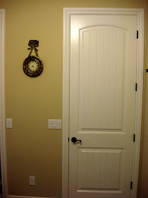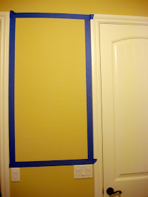I didn't measure because I am impatient and figured everything was probably measured when the house was built. I am aware this isn't always the case! I lined up my painters tape against the trim around the two doors and then just eyeballed the tape on the bottom and top (RISKY!).