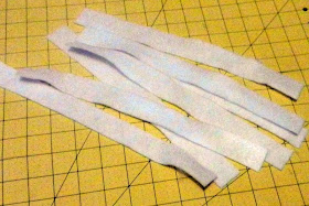 I wanted a pair with white ruffles so I cut one piece of felt into six 1" inch strips.