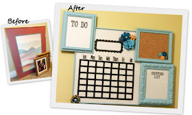 I was very excited to see that my project last week on 1 Month 2 Win It had the most votes! Our challenge was to make something using frames. I used four old frames and turned them into a dry erase calendar with attached dry erase boards (to do and shopping lists) and an attached cork board. I couldn't be happier with how my project turned out.
