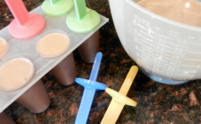 Yesterday I tried a new recipe from the included book. I had all the ingredients so I didn't need to go to the grocery store. My daughter was so excited when she heard I was making Malted Fudge Pops! I was anxious to get the pops in the freezer for a fun dessert after dinner.