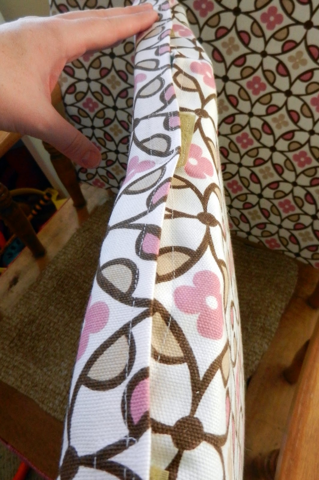 My friend's mother-in-law sewed cushion covers and a ruffle to match their first nursery. The ruffle was attached to the chair with velcro. I don't have a picture of the chair with the yellow cover but this is the removable ruffle: