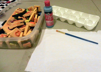 I started with foam stamps, fabric paint, and white cotton fabric to create the wording.