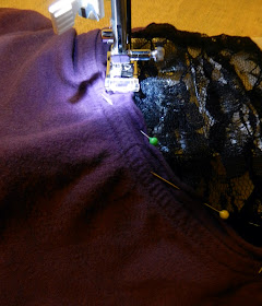 Next I carefully stitched the lace to the edge of the shirt with my sewing machine.A few minutes later I was wearing my new shirt.
