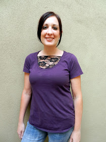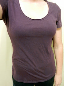 I was excited to have a reason for a shirt makeover today because lately I've been bored with the clothes in my closet. I had a very long list of ideas when I pulled out a plain purple tee. The shirt fit but I thought it was a little too plain and I didn't like the low neckline.