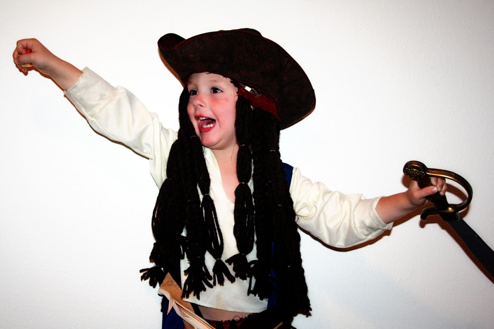 About a month ago I was at Costco with my kids and we browsed the Halloween costumes for ideas. Jackson immediately wanted the Jack Sparrow costume. At that time it was only $15 so I figured "what the heck" and bought it expecting him to change his mind by Halloween. Well he didn't. He loves it and wears it almost every day. Talk about getting my money's worth.