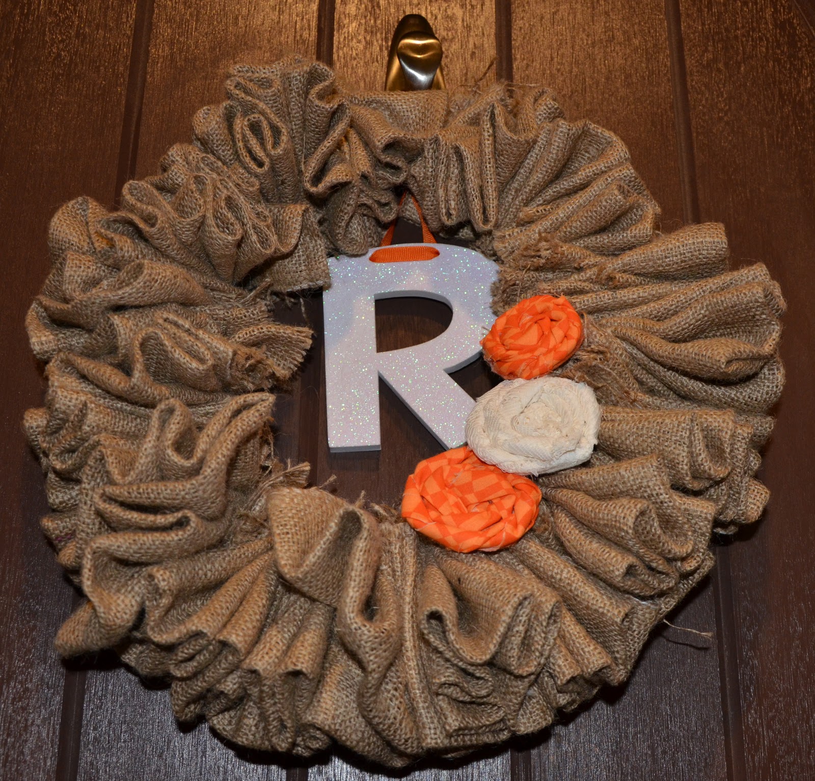 I finally talked myself into adding some color to the wreath. First I used a foam letter (our initial) from Target.