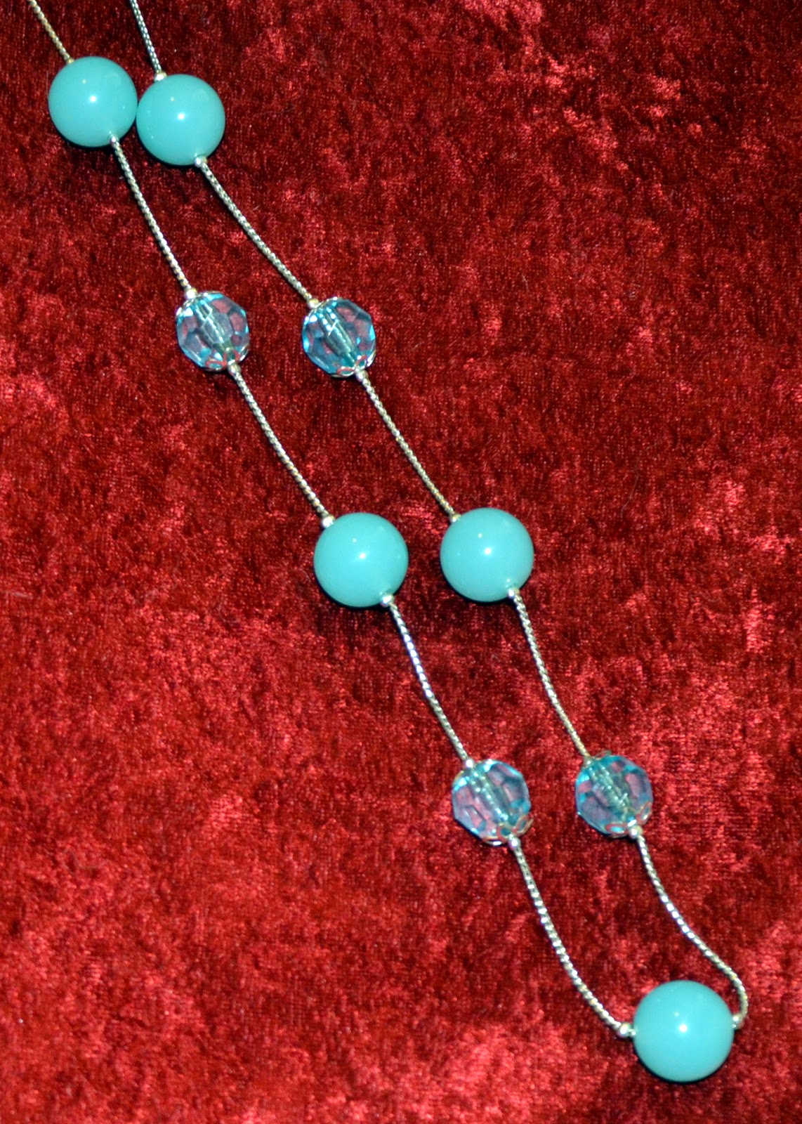My mom gave me this odd necklace with turquoise colored plastic beads for Christmas a few years ago. I wore it a lot because I really liked the color.