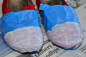 A few hours later I peeled off the tape to reveal our new sparkly shoes.