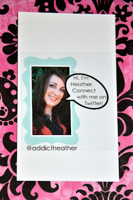 I don't use Twitter nearly as much as I should. Although I'm not very active I do want to share my contact information on my business cards. I already have cards and don't want to order new ones for just one added piece of information. Today I came up with the perfect solution - I created a sticker to add to the back of my cards.