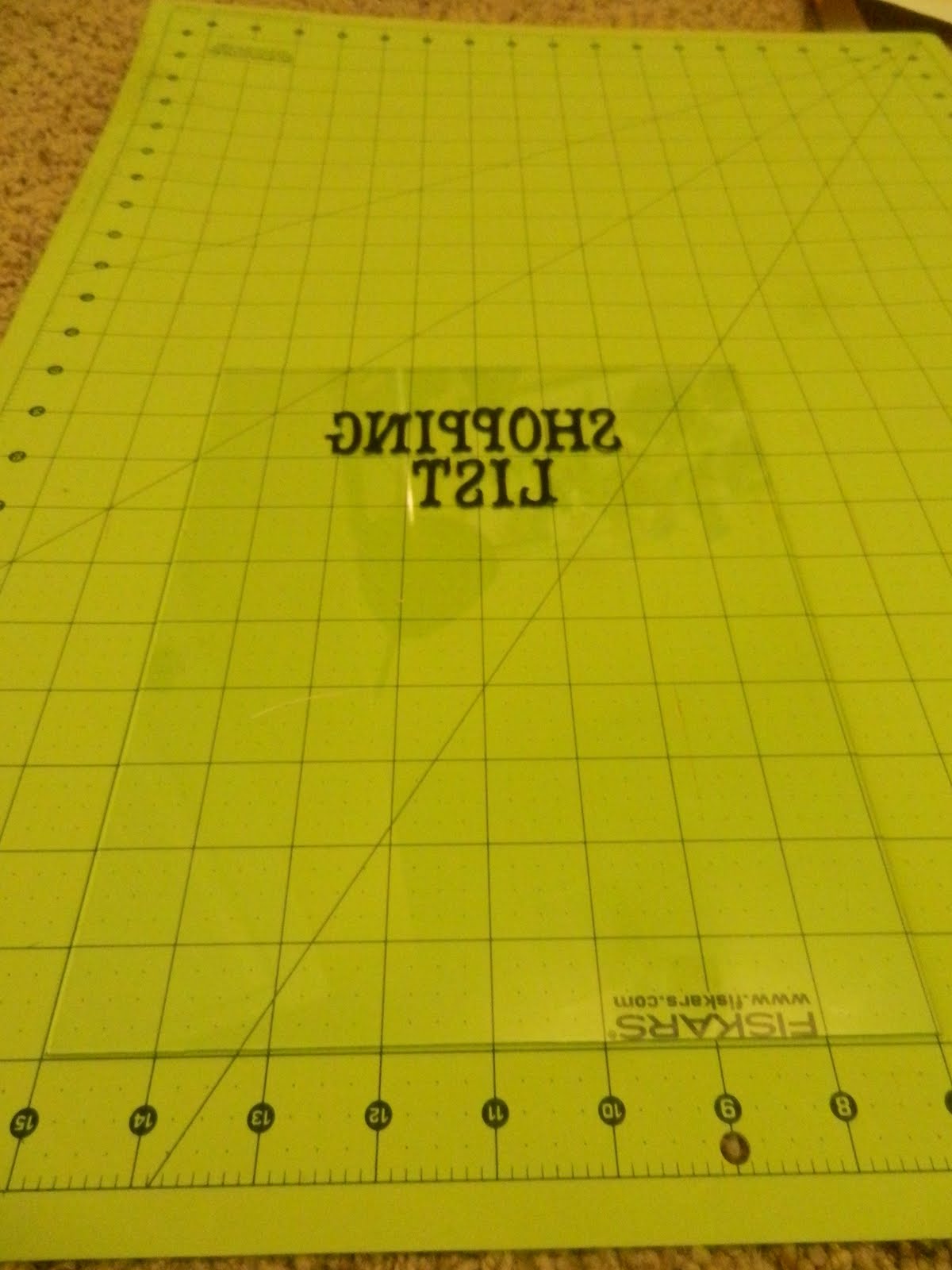 I used the same adhesive cardstock to cut out the letters for the other two dry erase boards ("to do" and "shopping list"). I used the cutting mat as a guide to apply the letters to the back side of the glass.