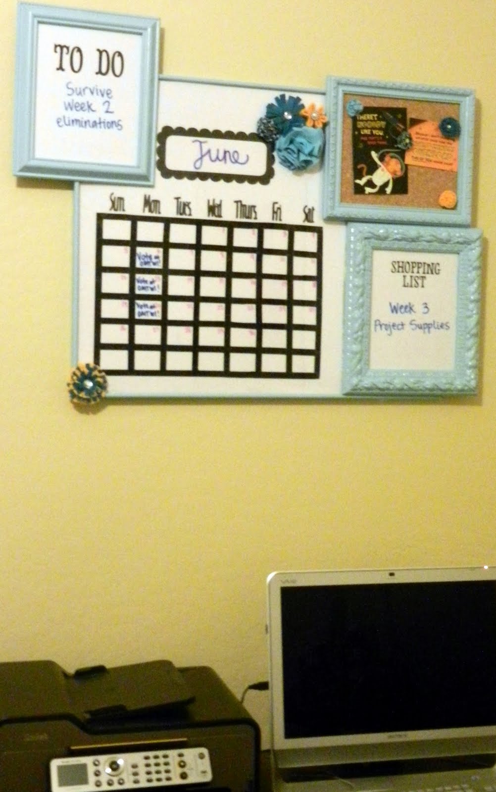 I had been thinking of making myself a big dry erase calendar in my office for months. In addition to a big calendar I really wanted a place for my to do list and somewhere nearby for a shopping list. I thought about using several different frames or painting an entire chalkboard wall to keep track of everything in my mind. Then I dreamt about having everything in the same place on an organizational collage. Really, I had a dream about this. I woke up excited to get started. I couldn't be happier with this project!