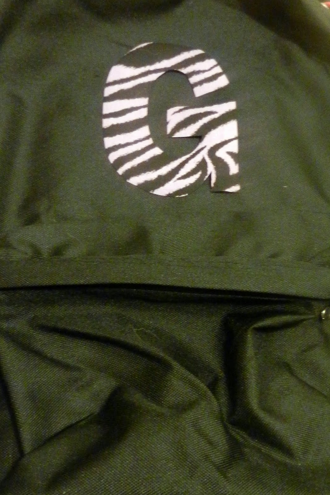 I simply ironed the Heat n' Bond initial to patterned fabric, cut it out, and then ironed the applique to the backpack. Be careful when ironing on the backpack (a low heat setting is suggested).