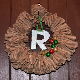 I changed the ribbon on the letter and added velcro to some small plastic ornaments to embellish the wreath. The ornaments came from the dollar store a few years ago.I'm really happy with this quick change!