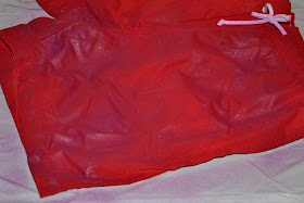 I had picked up a pair of red swim shorts from Old Navy a couple of months ago.