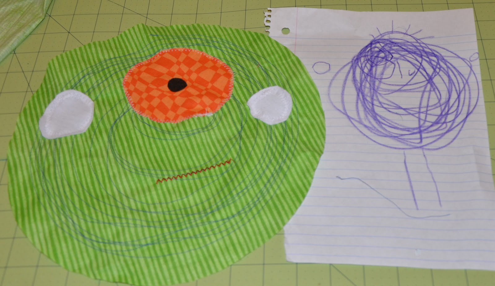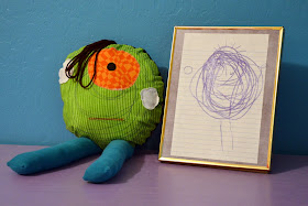 I am working on getting my three year old daughter back to sleeping in her own bed at night. We have been very nice and tried everything she's asked. Clearly that method is not working. Last week she told me she would sleep in her bed if she had a "stuffy monster." She went on to tell me a stuffy monster is a nice monster that keeps all the bad monsters out of her room. She said she saw it at Target. My daughter will say anything to continue sleeping in our bed...anything. I suggested we immediately go to Target and buy the stuffy monster. Her response was "maybe tomorrow." Sure kid, I'm onto you. I decided to make her one instead. I asked her to draw me a picture of what her stuffy monster should look like and I told her she could help me sew. She picked out all the fabric and approved the design through the entire process.