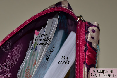 I put my business cards on one side of the divider and used the other side to store all the cards I received while networking. This worked so much better than having to shuffle through a bag to find my cards (that's what I did last year at Creative Estates).